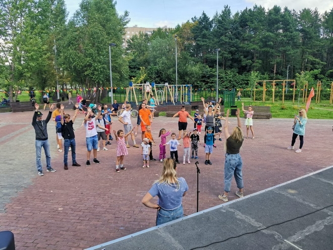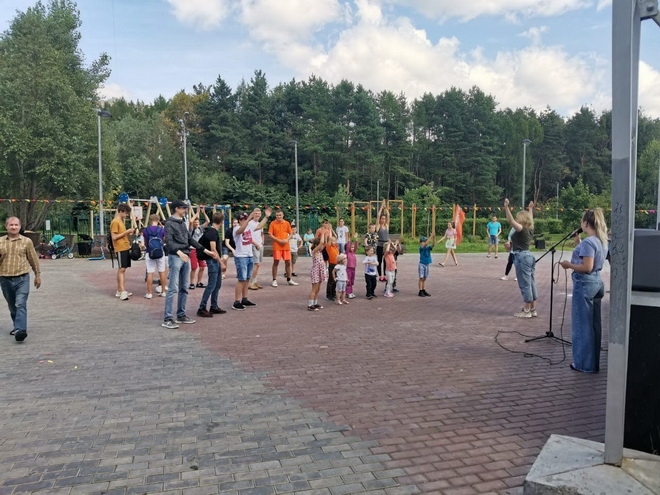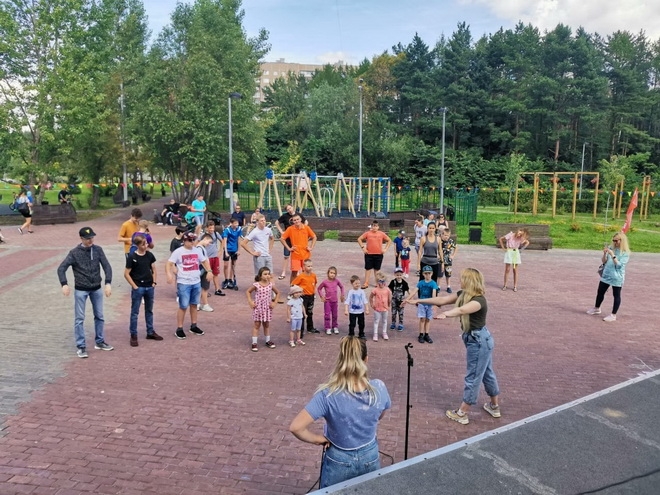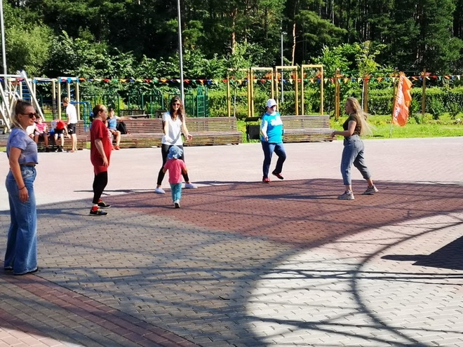 Занятие по Zumba в рамках проекта Фитнес-утро прошло 8 августа на Западной части Школьного озера.