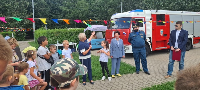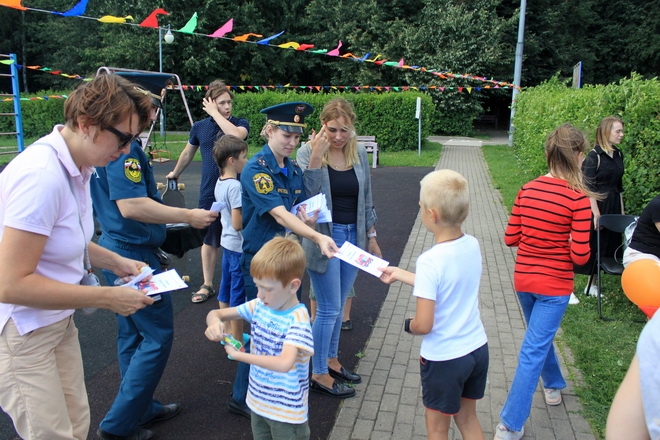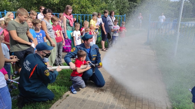 А в завершении мероприятия гости смогли попробовать себя в обращении с настоящим пожарным рукавом. Родители и дети получили памятки о безопасном поведении в быту и на воде; всем участникам мероприятия были вручены памятные призы и подарки от организаторов.
