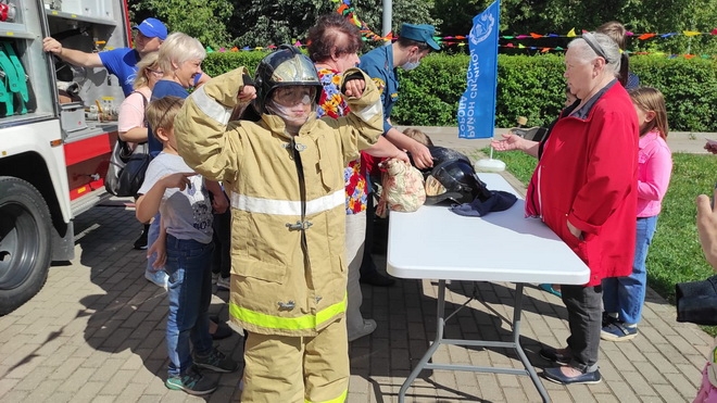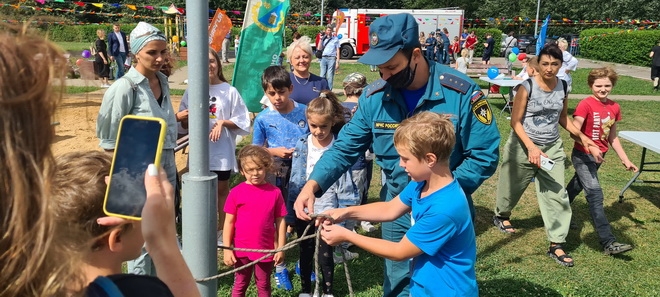 На мероприятии каждый желающий мог примерить боевую форму пожарного, посоревноваться в ловкости метания колец на кольцеброс, научиться вязать узлы, которыми пользуются спасатели и пожарные.