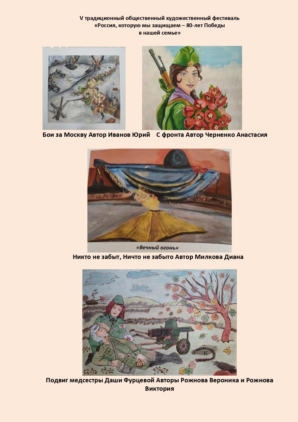 Пусть память о герое Великой Отечественной Войны передаётся из поколения в поколение средствами художественного творчества детей и молодёжи!