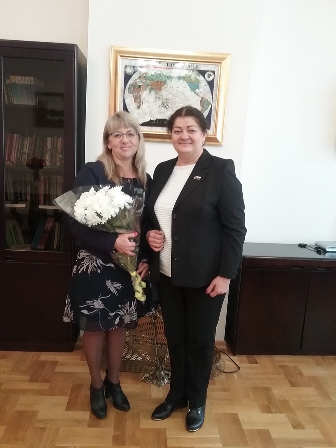 12.10.2017 г. глава муниципального округа Силино Анна Ясинова поздравила с юбилеем ректора филиала Московского государственного педагогического университета по Зеленоградскому административному округу города Москвы - Литвинову Светлану Николаевну.
