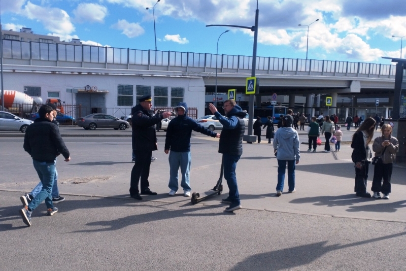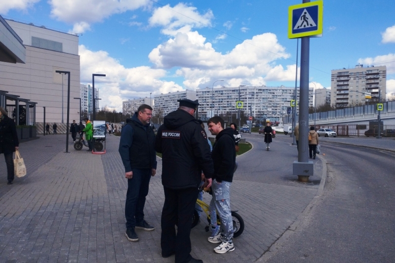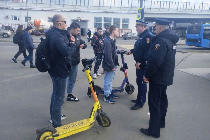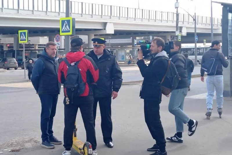 Инспекторы ГИБДД Зеленоградского округа совместно с представителем Общественного совета при УВД Владимиром Уткиным провели рейд по выявлению нарушителей среди пользователей электросамокатов.