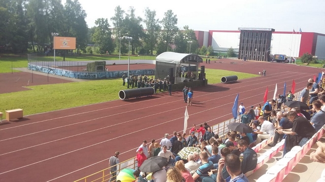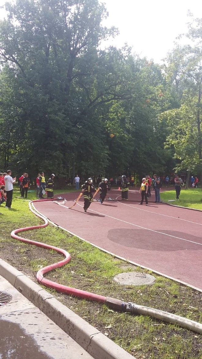 В первый день проходила пожарная эстафета, в ходе которой перед командами стояла задача: на скорость надеть боевую одежду пожарного, завязать специальным образом веревку для транспортировки пострадавшего, преодолеть препятствие в виде забора, пробежать по буму, затем раскатать рукав и соединить его с разветвлением и стволом. Самым ярким и зрелищным был завершающий этап эстафеты. Участнику команды необходимо было потушить условный пожар.