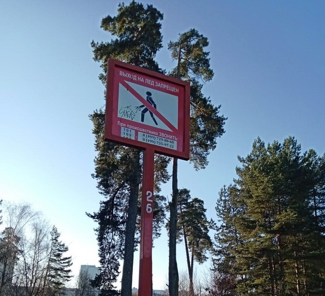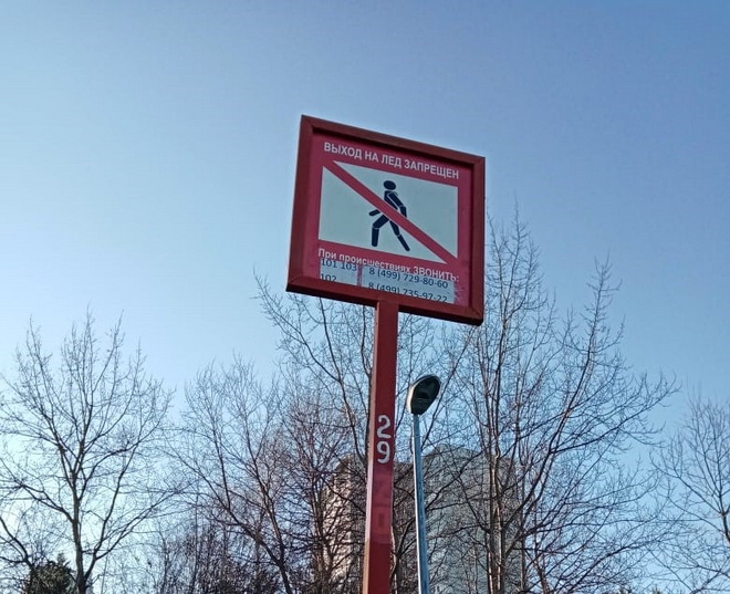 Для обеспечения безопасности населения в зимний период на берегах водоемов Зеленограда проведена замена знаков безопасности с «летних» на «зимние». Она необходима для предотвращения несчастных случаев в зонах отдыха зимой и профилактики безопасности среди населения округа. Для этого «зимние» информационные знаки размещают таким образом, чтобы они были видны из любой точки берега водоема.
