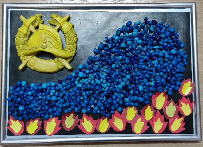 По окончании увлекательной экскурсии детишки подарили огнеборцам на память картину, которую сделали своими руками.